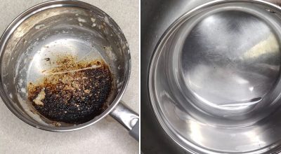 Opozoriti je treba, da lahko s to metodo očistite zažgano posodo ali ponev iz nerjavečega jekla, stekla, keramike ali emajlirane posode.